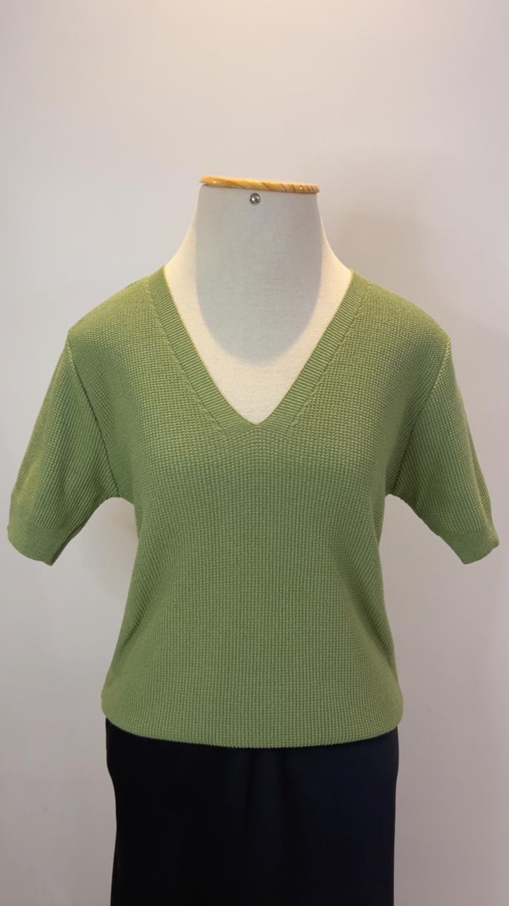 Blusa Catherine decote V, feita em tricot, possui manga curta, versátil e leve, a blusa perfeita para usar em diversos momentos com calças, saias e shorts .