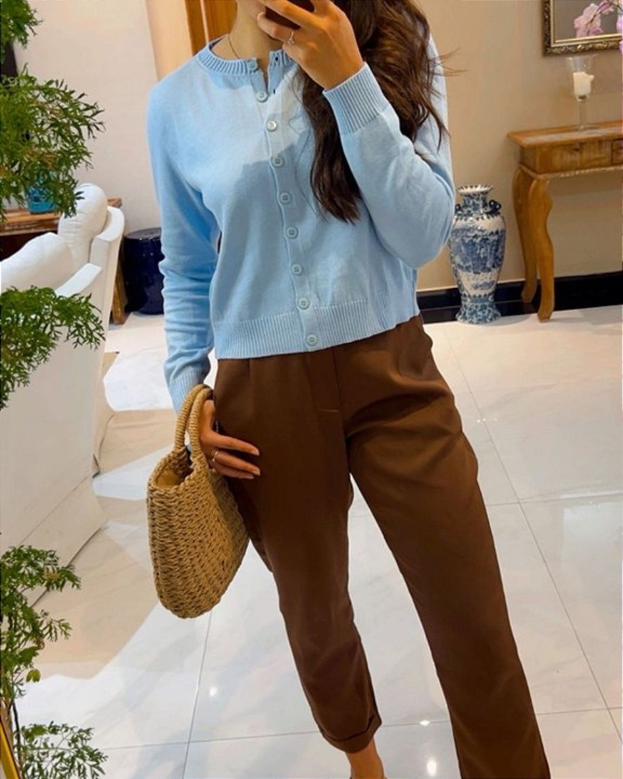 Cardigan Trt Botões feito em tricot de alta qualidade, com fio de viscose e poliamida que proporciona um toque macio e grande durabilidade. Perfeito para usar com todas as calças,vestidos, saias , uma peça essencial em todas as cores para compor looks e um guarda roupa funcional.