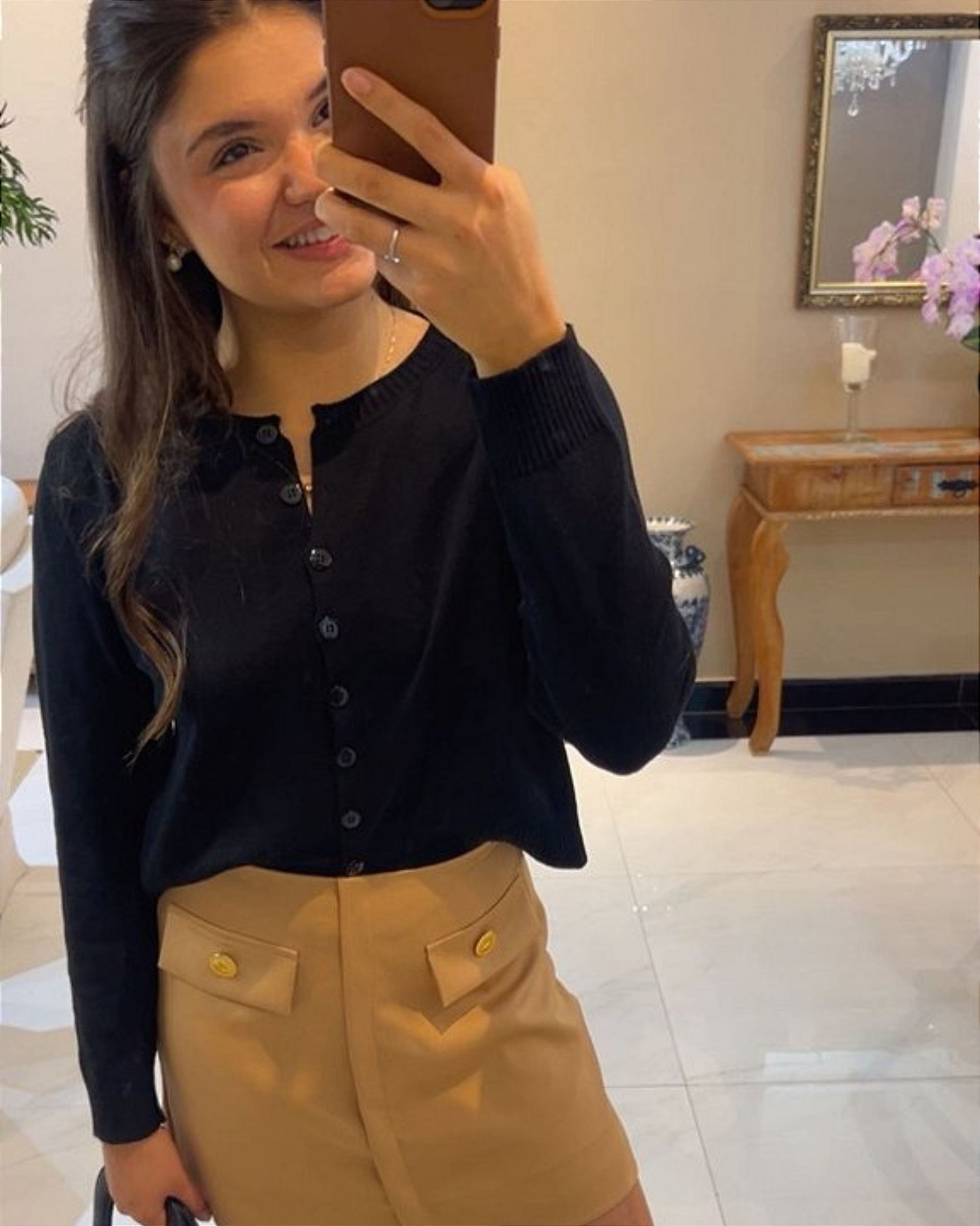 Cardigan Trt Botoes feito em tricot de alta qualidade, com fio de viscose e poliamida que proporciona um toque macio e grande durabilidade. Perfeito para usar com todas as calças,vestidos, saias , uma peça essencial em todas as cores para compor looks e um guarda roupa funcional.