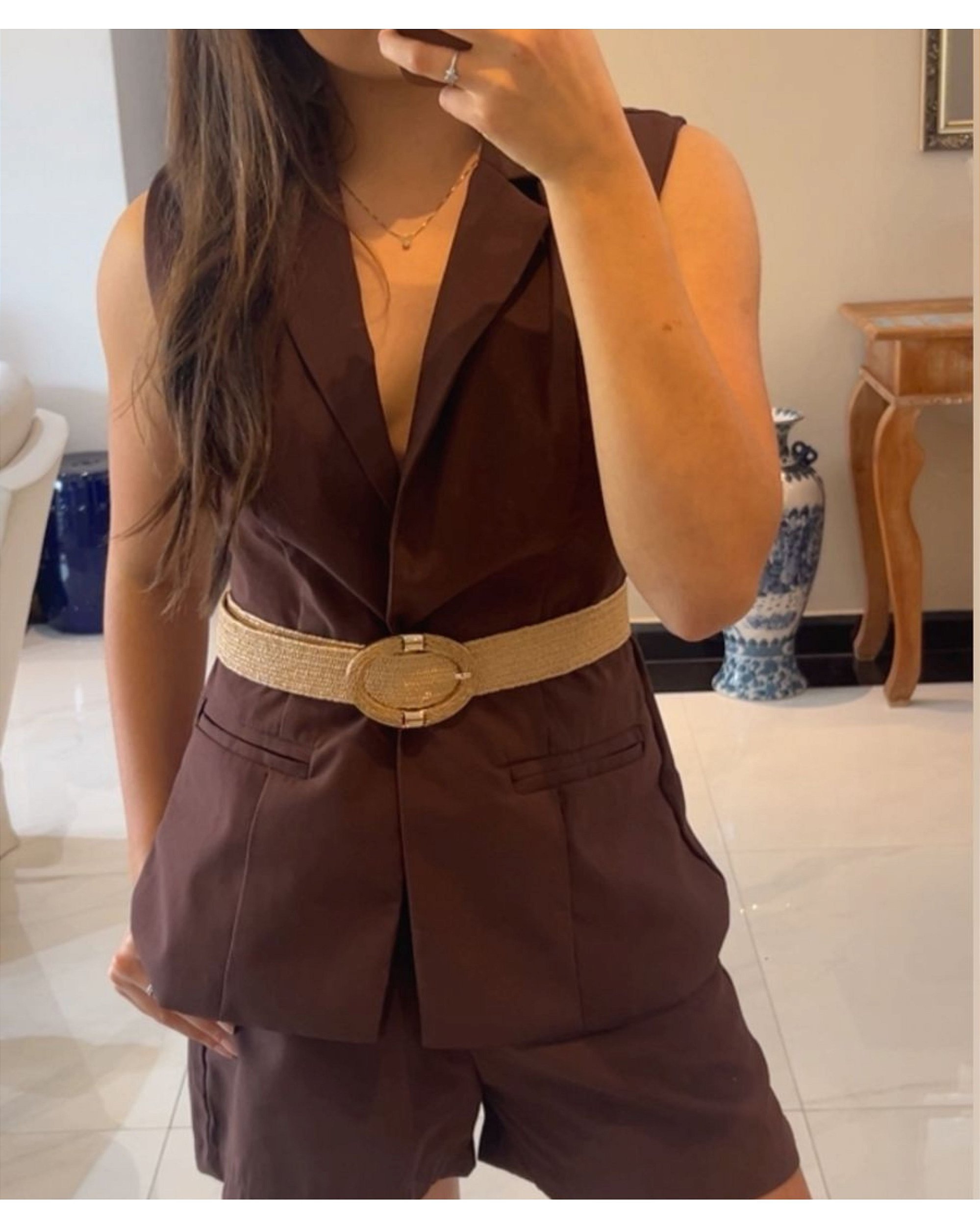 Cinto elástico palha com Fivela.