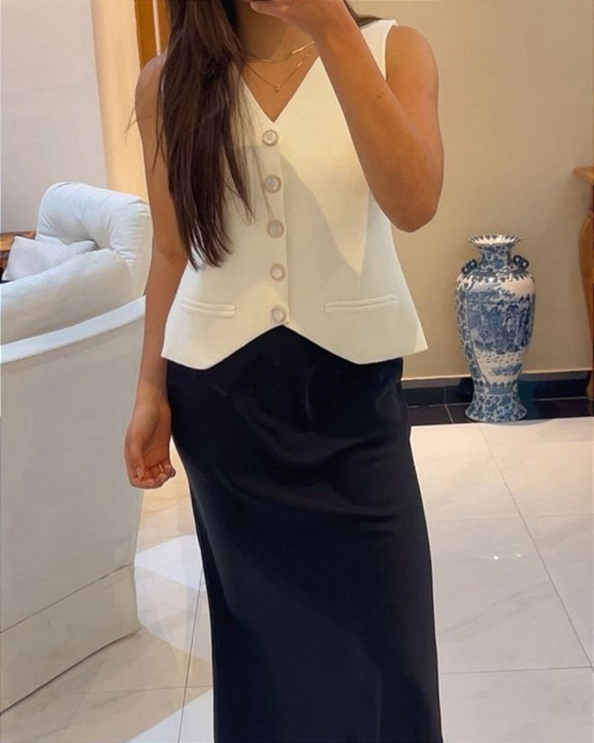 Colete Tricot lavans tem uma modelagem impecável, estruturado, com detalhes dos botões que deixa ainda mais sofisticado