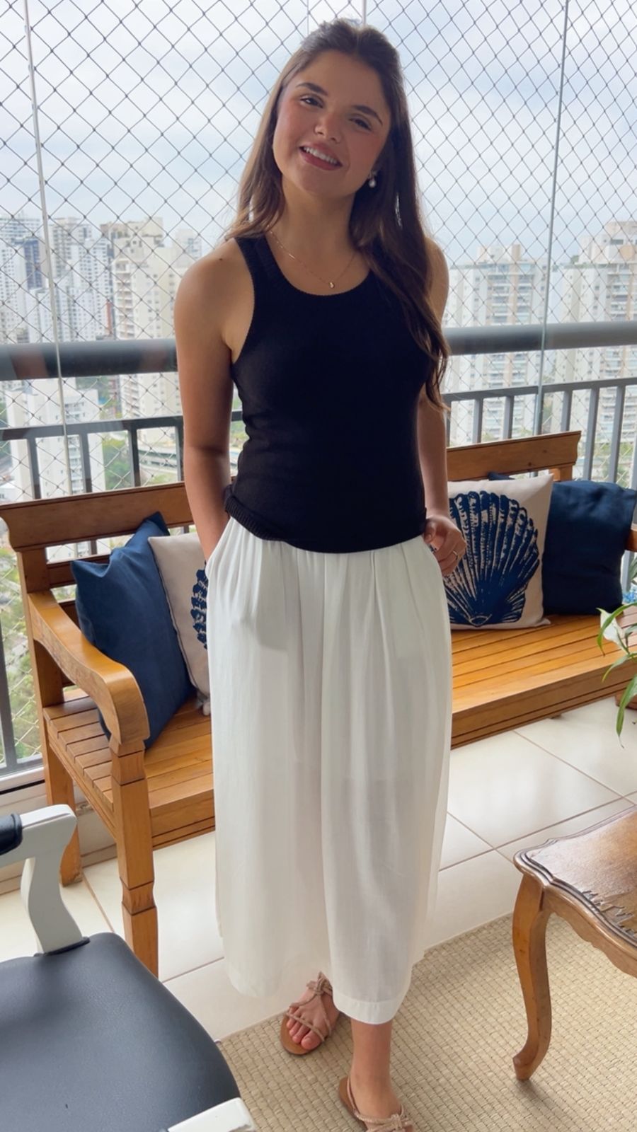 Saia Ceci, possui um modelagem fluída, ampla, com elástico atrás que deixa uma modelagem bem confortável, tem bolso que deixa um atitude moderna a atual,ela é perfeita para o dia a dia, viajar, usar com as blusas femininas fazendo looks para eventos, com camisas e tricot para trabalhar, uma peça que pode ser usada de várias maneiras e possibilidades. Encantadora e feminina!